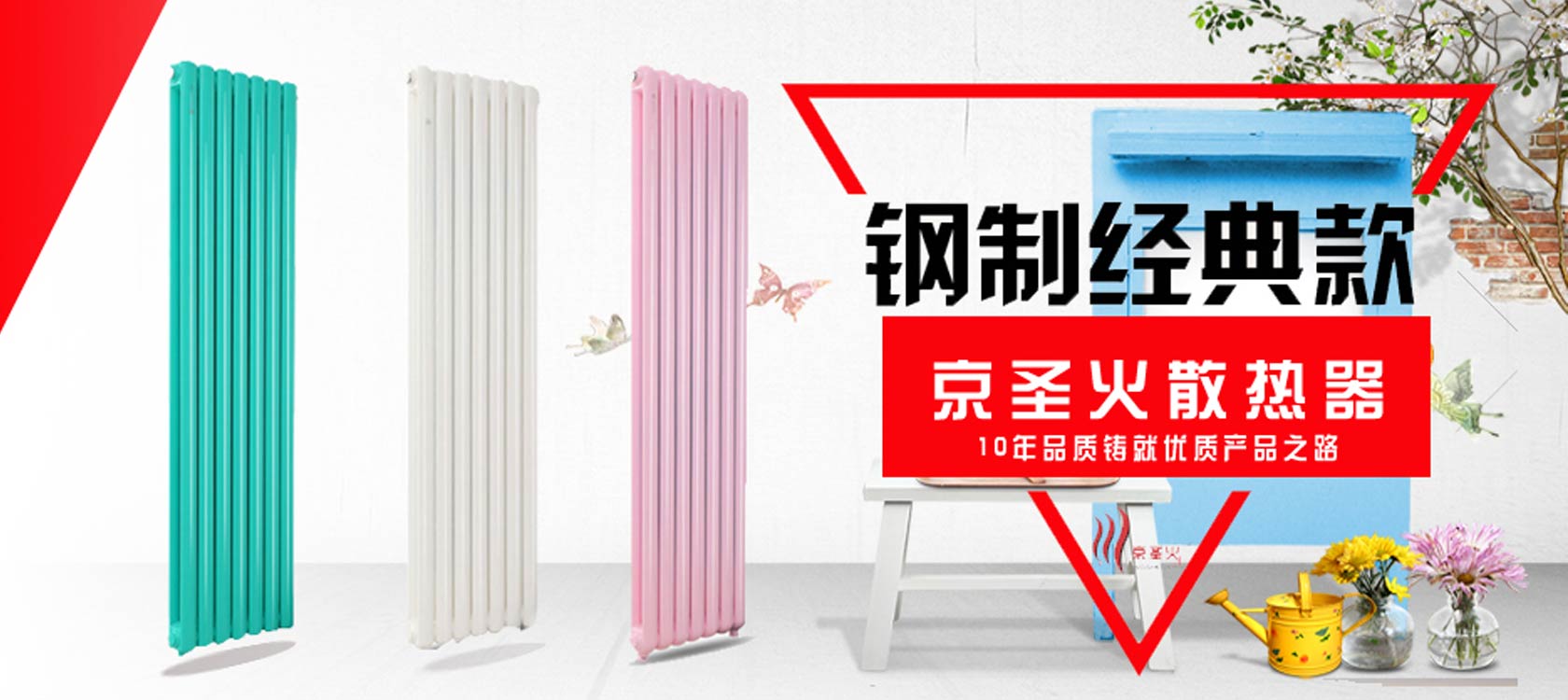 京圣火散热器致力于新型散热器的开发和研制,推出一系列符合国家规定的节能环保的钢制和钢铝散热器、铜铝复合散热器。产品风格多样,外观高雅,具有较强的装饰效果,且体积小,质量轻(约是铸铁散热器的1/3),承压高(1.5MPa),耐腐蚀,是装点家居、建筑开发的选择。公司有多年生产散热器的历史,拥有散热器的生产经验和技术实力,经过不断的探索,不断的更新,现已发展成为国内生产散热器的规模厂家之一。